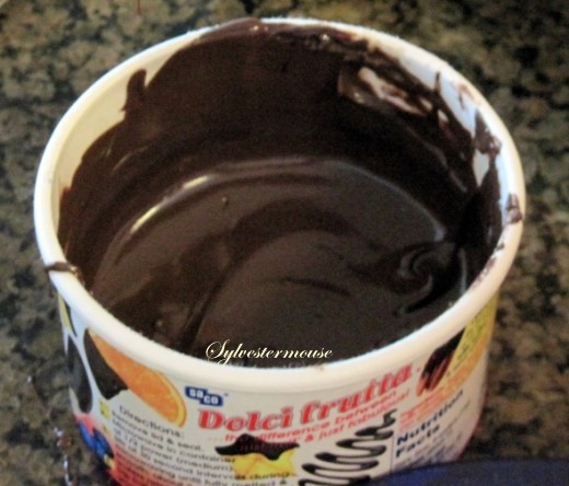 Step 2: Melt Your Chocolate ~ If you use Saco Dolci Frutta, you can melt the chocolate in the microwave in their package container. Melt the chocolate in the microwave for 2 minutes on medium and stir the chocolate until it is completely melted. Other chocolates will need to be melted in a double boiler or a microwavable dish.