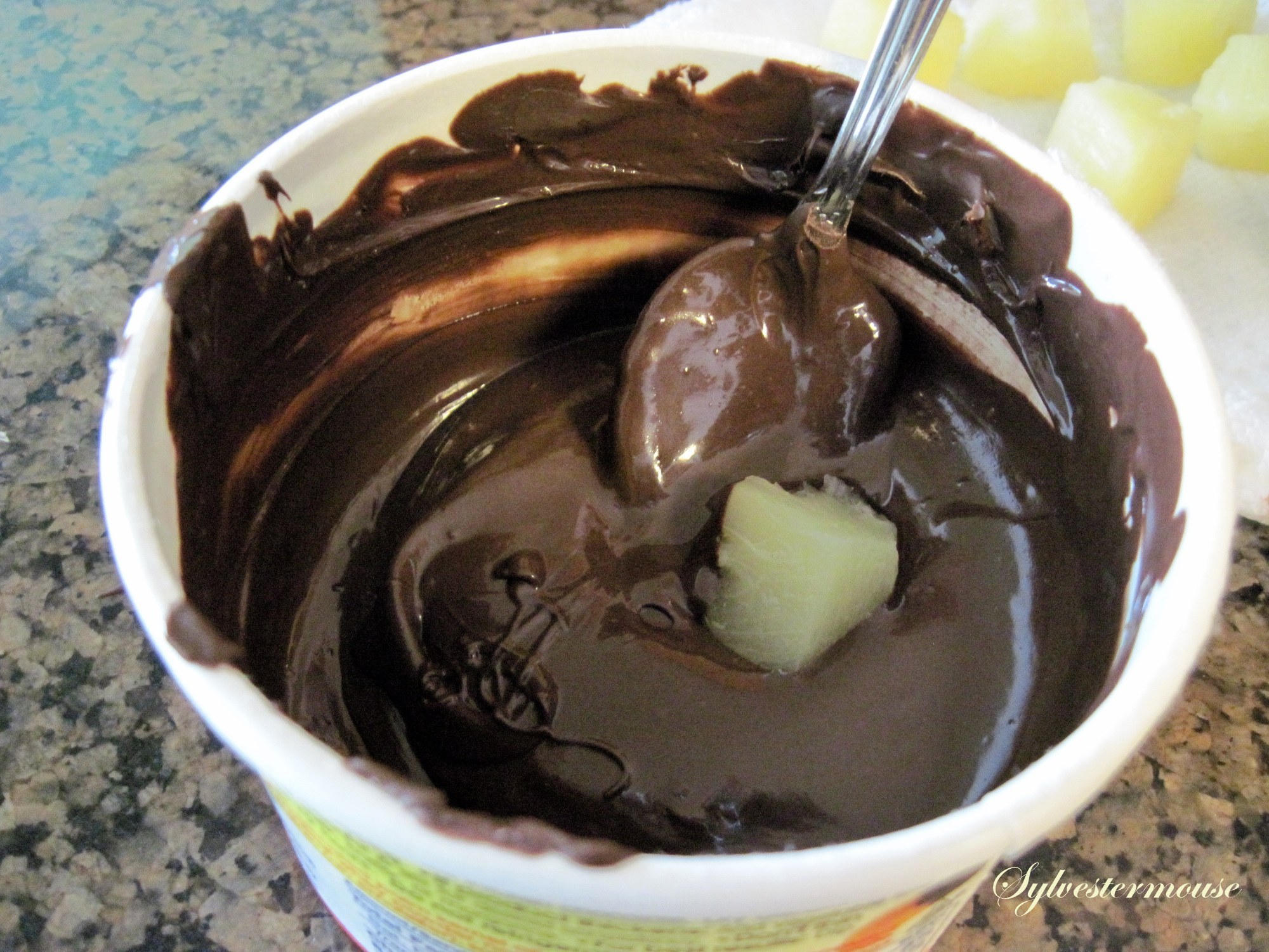 Step by Step Photos ~ Chocolate Covered Pineapple Chunks