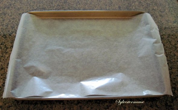 Step 1: Cover a cookie sheet with wax paper ~ The cookie sheet will make it easier to move your Chocolate Covered Fruit.