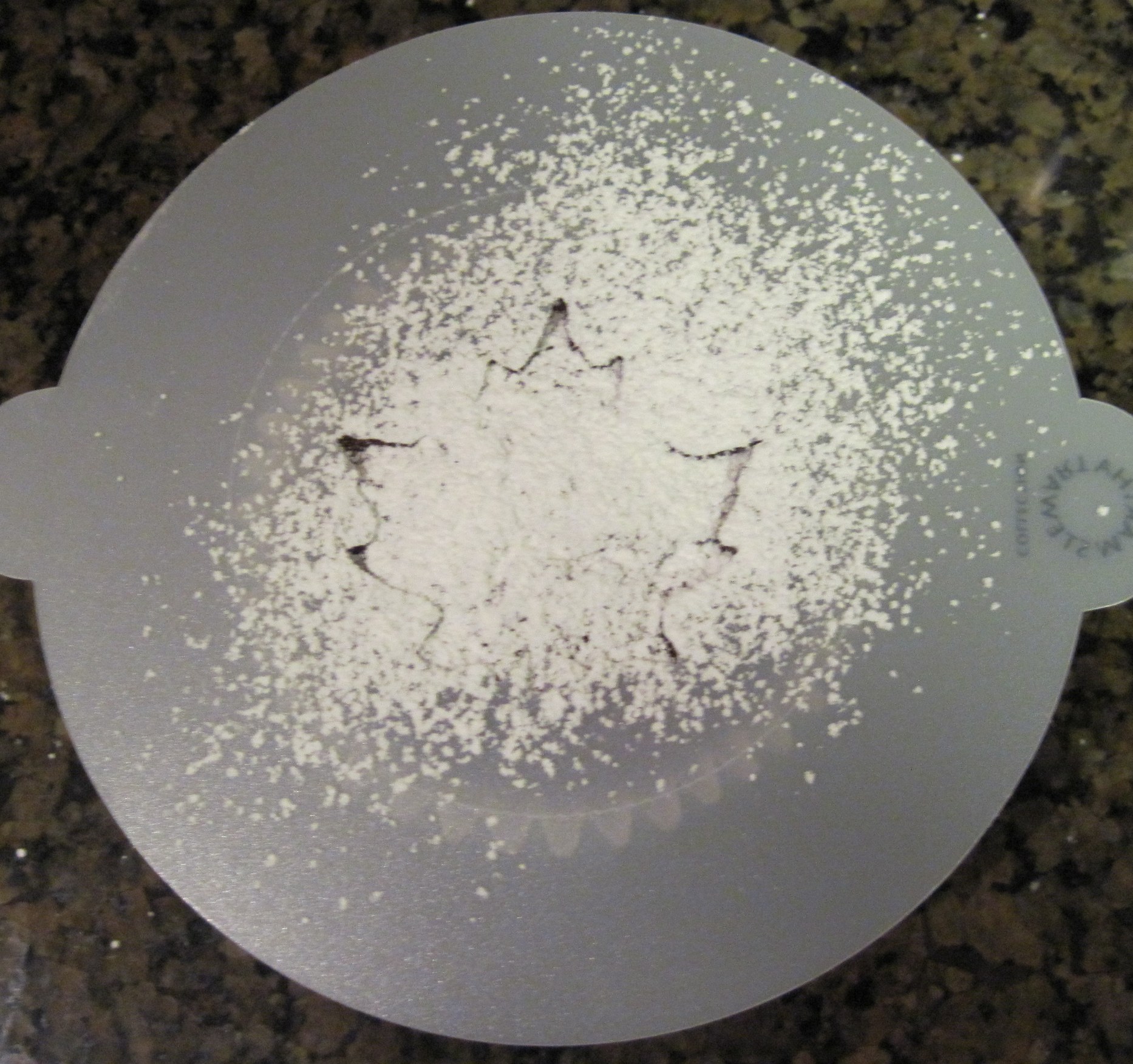 Decorators note: An essential tool for decorating with Confectioner’s sugar is a cup with a mesh top.