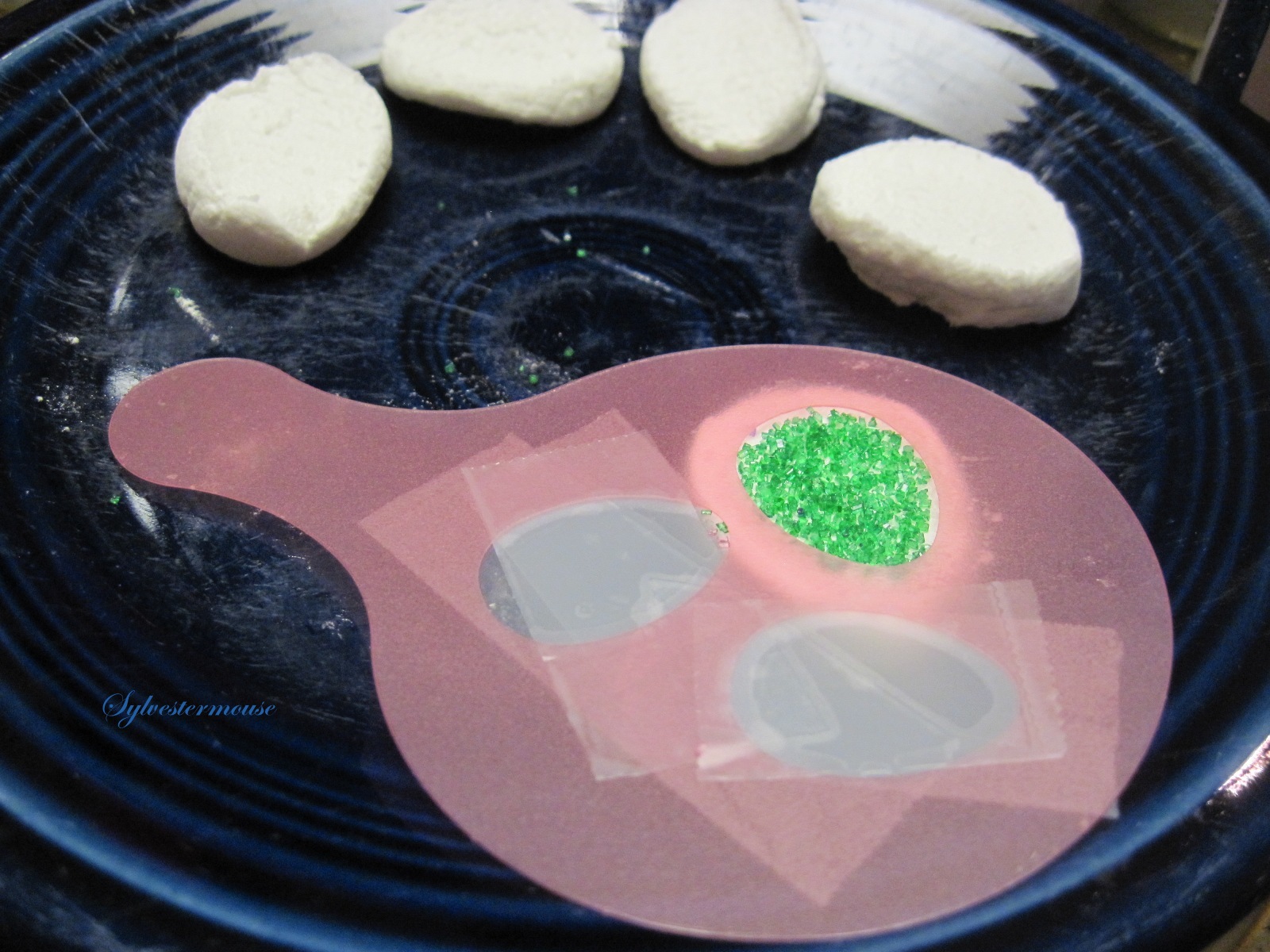 Step 2: Place the stencil or template. (I used a mini egg stencil featured below)