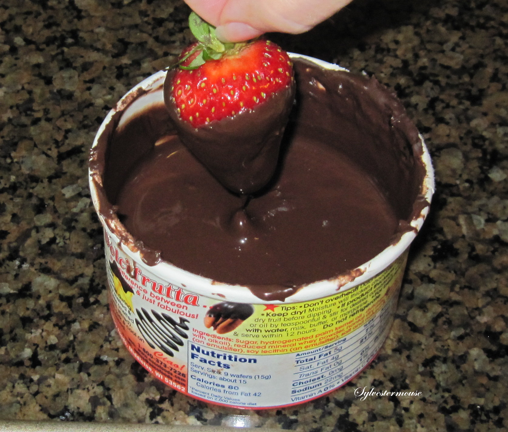 3:  Melt Your Chocolate ~ If you use Saco Dolci Frutta, you can melt the chocolate in the microwave in their package container.  Melt the chocolate in the microwave for 2 minutes on medium and stir the chocolate until it is completely melted.